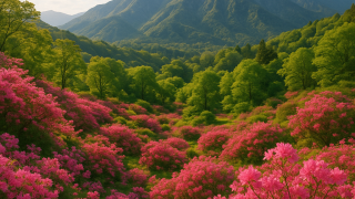 三重県の名勝にも指定されている大平ツツジ山は、約6ヘクタールもの広大な山腹が、約10,000本の自生ツツジで覆われる圧巻のスポットです。ピンク、赤、白の花々が織りなす光景は、まるで自然が描いた巨大な絨毯のよう。展望台からは、周囲の山々や熊野灘まで見渡せる絶景も楽しめます。